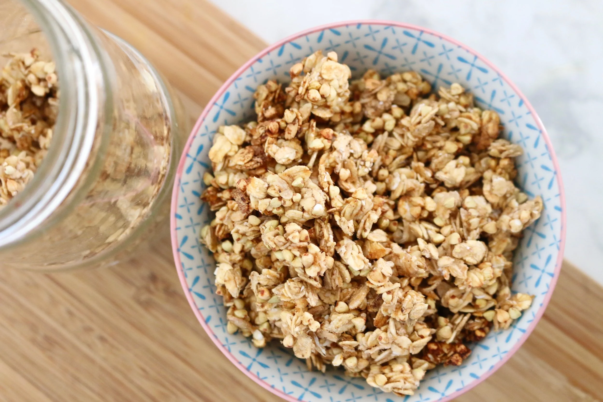 It's perfectly sweet, packed with flavour and filled with plenty of those crunchy golden clusters that every good granola needs. Better yet is that it also happens to be completely refined-sugar and oil free, while being full of nutrients such as fibre, complex carbohydrates, B vitamins and iron! I love eating it straight out of the jar as a snack, paired with fresh fruit and plant milk or vegan yoghurt and, of course, as a topping for smoothie bowls, banana ice cream and anything else that could possibly be in need of a crunchy cinnamon-y topping (which is most things!). I'd love to know what your favourite way to eat granola is?